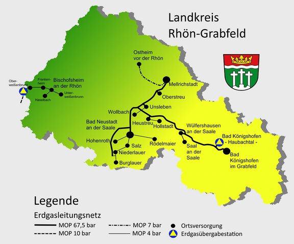 Die Bayerische Rhöngas GmbH ist örtlicher Verteilnetzbetreiber mit dem Netzgebiet Landkreis Rhön-Grabfeld.